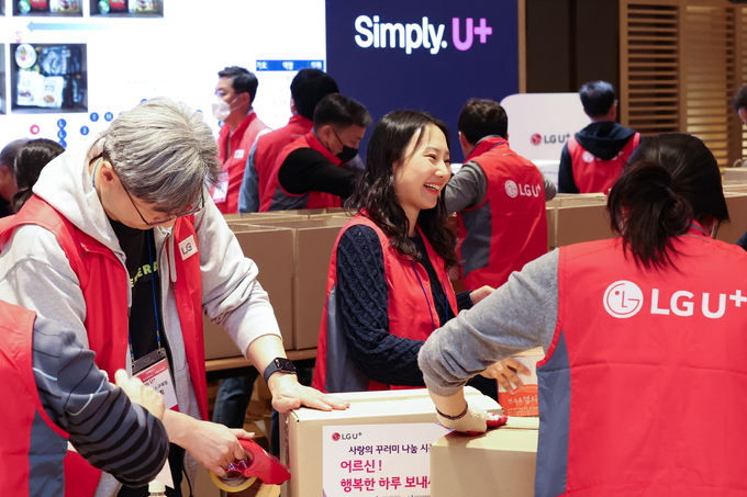 LG유플러스 임직원들과 U+동반성장보드 멤버 60여 명은 17일 LG유플러스 용산사옥에서 홀로 사는 어르신들을 위한 사랑의 꾸러미 730개를 제작했다. 꾸러미에는 LG유플러스와 U+동반성장보드가 올해 모은 기부금으로 구매한 쌀, 식료품, 손난로 등을 담았다. U+동반성장보드는 LG유플러스의 32개 협력회사로 구성된 동반성장 협의체로 동반성장 관련 제도 및 시행 내역을 공유하고 LG유플러스와 협력사 간 소통 창구 역할을 하고 있다.