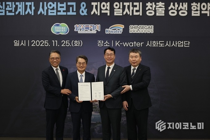 이날 한국수자원공사 시화도시사업단에서 진행된 협약식에는 정명근 화성특례시장, 김동연 경기도지사, 임영록 신세계 그룹 사장, 안정호 한국수자원공사 그린인프라부문장을 비롯한 주요 관계자들이 참석해 협력에 뜻을 모았다.