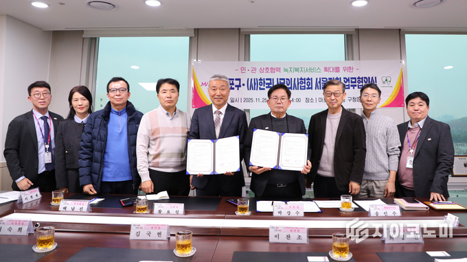 지이코노미 최영규 기자 | 마포구(구청장 박강수)는 11월 25일, 서울특별시 자치구 최초로 (사)한국나무의사협회 서울지회(지회장 황요섭)와 전문적이고 체계적인 수목 관리를 위한 업무 협약을 체결했다.