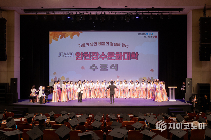 지이코노미 최영규 기자 | 양천구(구청장 이기재)가 11월 26일 양천문화회관 대극장에서 제38기 『양천장수문화대학』 통합 수료식을 열고, 지역 어르신들과 함께 배움의 결실을 나누는 뜻깊은 시간을 가졌다.