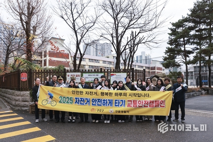 지이코노미 최영규 기자 | 구로구(구청장 장인홍)가 11월 27일 구로고등학교 앞 통학로 일대에서 학생과 함께하는 ‘개인형 이동장치(PM)·자전거 안전 캠페인’을 진행했다. 이번 캠페인은 구로고 학생들이 구청 누리집 ‘구청장에게 바란다’ 게시판에 올린 제안에서 시작돼 청소년 주도로 기획됐다.