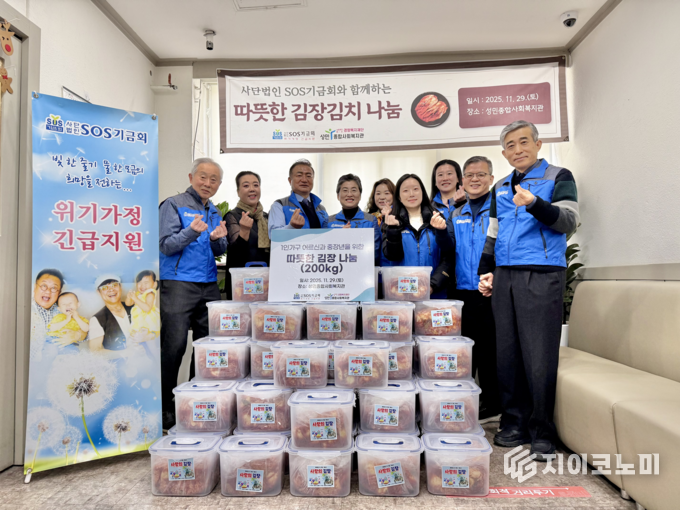 지이코노미 최영규 기자 | 지난 11월 29일, 사단법인 SOS기금회(김항섭이사장)는 성민종합사회복지관(나상희 관장)에 김장김치 200kg를 후원하며, 관악구 내 1인가구 어르신과 중장년 주민들을 위한 따뜻한 겨울나기 나눔에 동참했다.