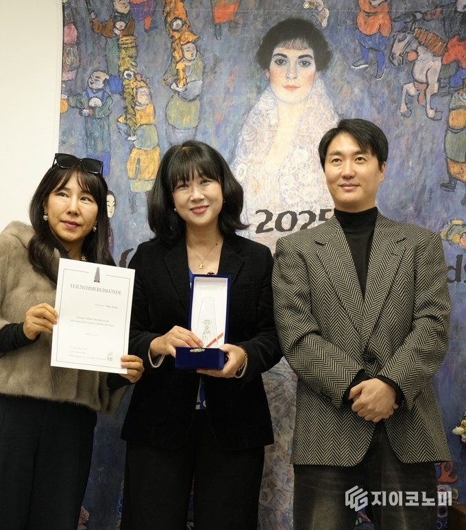 지이코노미 정길종 기자 |오스트리아 비엔나 클림트 빌라 & 아틀리에에서 열린 ‘제2회 2025 Gustav Klimt Award에서 한국 작가 샤이니영(Shiny Young·최영신)’이 본상을 수상했다.