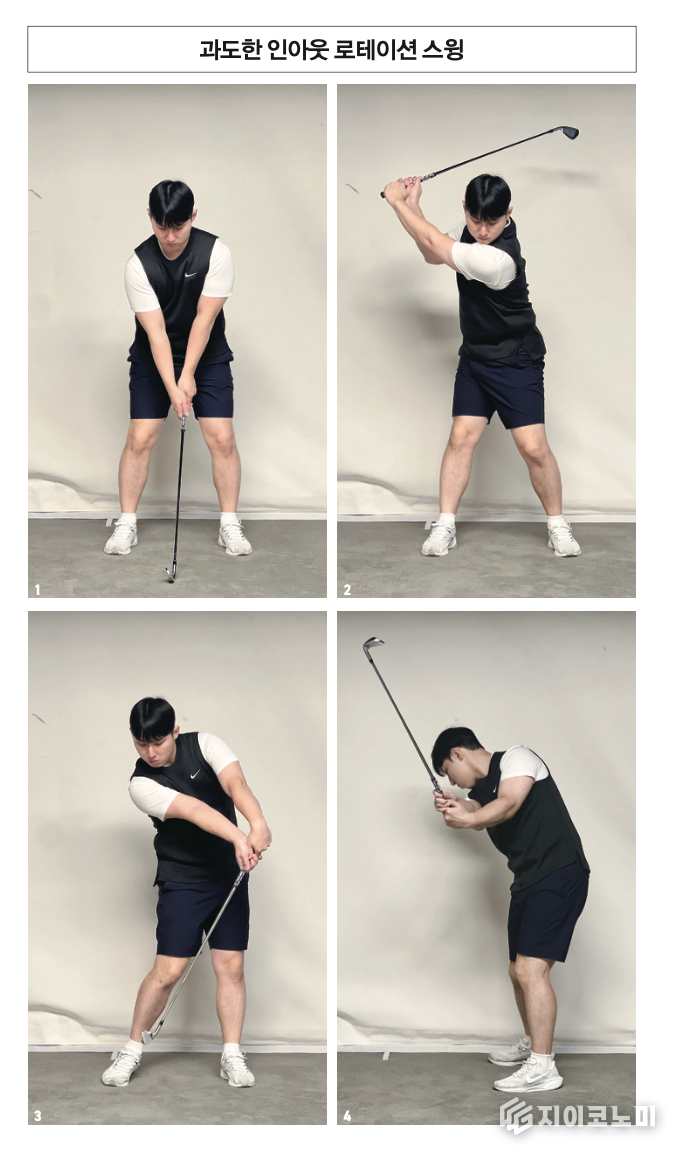 인아웃 스윙궤도와 과도한 로테이션에 대한 이론이 틀리다는 것보다는 한국에서 거의 대부분의 아마추어 골퍼들이 이 이론이 스탠더드하게 받아들여지고 있는 부분이다. 분명히 공을 똑바로 날리는 방법에 있어서 더 많은 이론들이 존재하고 그 이론들이 기준이 되어야 하는 것이 맞다고 생각한다. 물론 개개인의 차이로 공을 치는 방식에 있어서 편안하게 받아들여지는 부분이 있겠지만 명확히 해야할 것은 명확하게 해야한다고 생각한다. 인아웃 궤도와 로테이션을 상황마다 활용하는 것이 아니라 의사들의 처방처럼 필요한 순간에 처방이 되어야 한다.