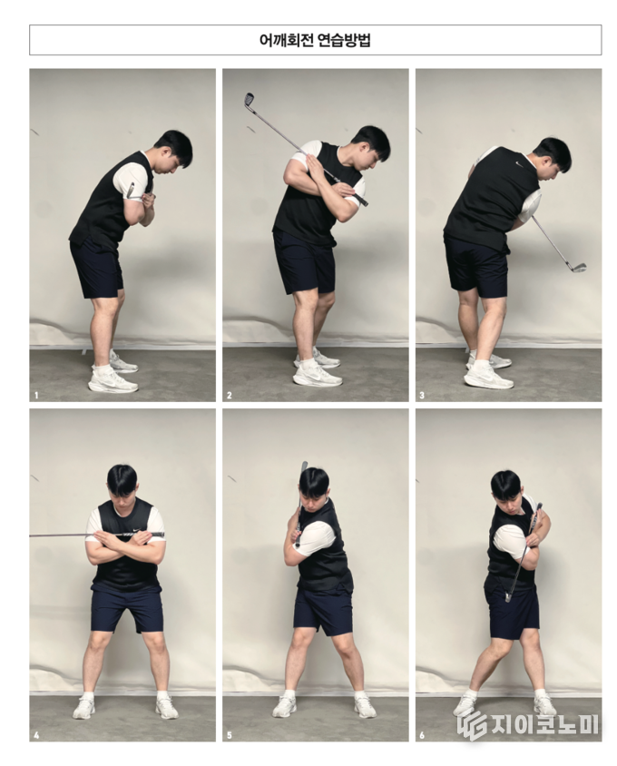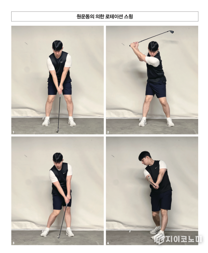 골프는 원 운동이라는 점을 항상 생각해야 한다. 몸의 축을 잡고 그 기준으로 체중 이동과 회전이 되어서 공을 똑바로 날려보낸다는 생각을 해야 한다. 우리의 몸이 좌우로 잘 회전된다면 클럽헤드의 회전도 자연스럽게 따라올 수 있게 된다. 오늘 알려주는 연습동작을 통해서 몸의 로테이션을 느껴보면서 스윙을 잘 만들어 가도록 해보자.