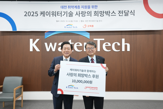 케이워터기술 정승용 대표이사는 "이번 후원을 통해 올겨울 이웃들의 언 몸과 마음을 녹일 수 있기를 바란다"며 "앞으로도 지역사회 취약계층에 실질적인 도움이 될 수 있도록 지속적인 지원을 이어가겠다"고 전했다.