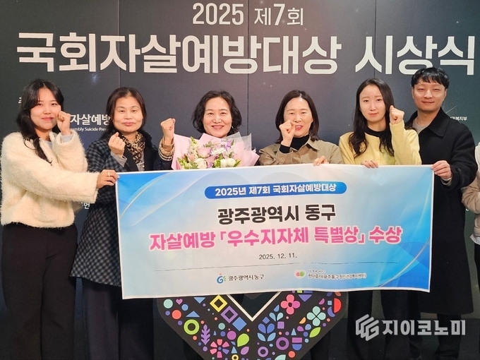 지이코노미 한정완 기자 | 광주광역시 동구는 지난 11일 ‘제7회 국회 자살예방 대상’에서 우수 지방자치단체 특별상을 수상했다고 밝혔다. 이번 수상은 동구가 추진해 온 정신응급 위기대응체계 구축 노력이 인정받은 결과다.