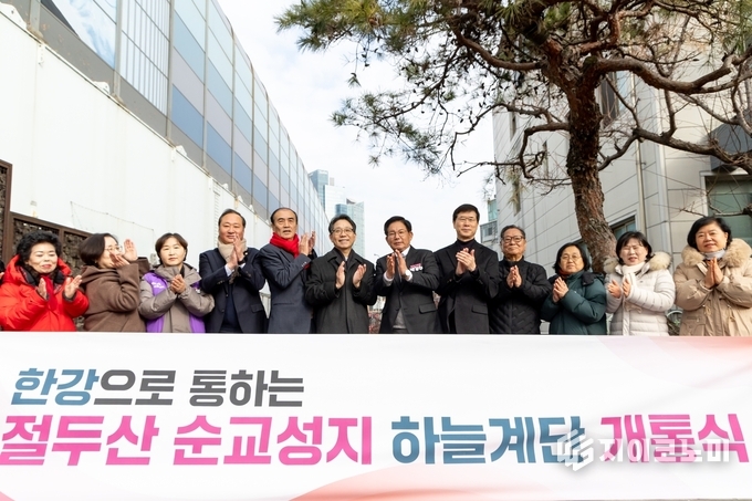 행사는 절두산 순교성지 원종현 신부의 축하 기도로 시작돼 성지의 의미를 되새기는 엄숙한 분위기 속에서 진행됐으며, 이후 참석자들은 새롭게 정비된 하늘계단을 직접 둘러보며 절두산 순교성지가 지닌 순례지로서의 위엄과 깊은 신앙적 의미를 다시 한번 되새겼다.