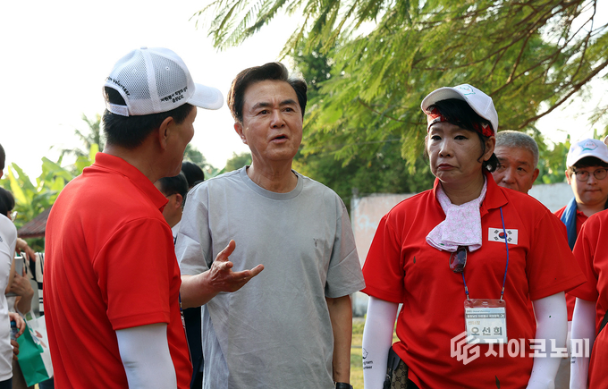 또 도와 시군 자원봉사센터는 학교에 선풍기와 축구공, 공용 학용품을 기증하고, 교정에는 망고나무를 심어 상징적인 나눔의 의미를 더했다. 김 지사는 자원봉사자들을 격려한 뒤 학교 건물 페인트칠 마무리 작업에 참여하고, 망고나무 기념 식수도 함께했다.
