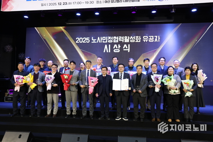 지이코노미 정길종 기자 |충남도는 23일 아산 모나밸리 웨딩홀에서 ‘2025년 하반기 노사민정협의회 및 성과보고회’를 개최했다.