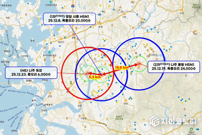 지이코노미 김정훈 기자 | 나주시 동강면 종오리 사육 농장에서 H5형 조류인플루엔자(AI) 항원이 검출되면서 전남 지역 가금 방역에 다시 긴장감이 높아지고 있다.