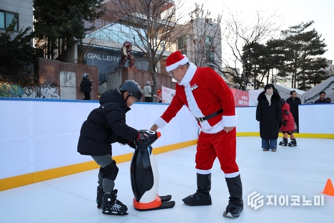 지이코노미 최영규 기자 | 크리스마스 이브인 12월 24일, ‘윈터페스타 엄빠랑 아이스링크’에 산타로 깜짝 변신한 박강수 마포구청장이 등장해 아이들에게 특별한 추억을 선사했다.