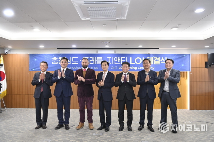 충남도는 26일 도청 상황실에서 김태흠 충남도지사와 손일수 지앤티 대표, 빌리 프란츠 프레틀 프레틀그룹 최고경영자(CEO)가 참석한 가운데 투자 협력 의향서(LOI)를 체결했다고 밝혔다.