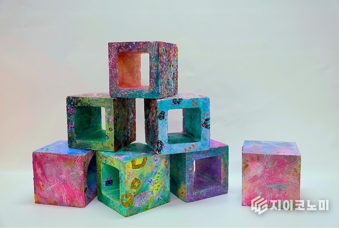 세연(SE-YEON, ICHIGO) 작가의 대형 작품 ‘OXT:50-56-6 NO.2’는 아크릴과 혼합 매체를 활용한 실험적 조형 언어로 강렬한 에너지를 전달하며 공간에 역동성을 더했다.