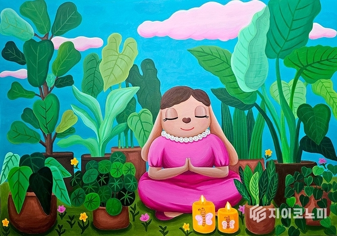 샤이니영(SHINY_YOUNG) 작가의 회화 작품 ‘My own afternoon’은 아크릴과 색연필을 활용한 섬세한 표현으로 일상의 감정과 사적인 순간을 따뜻하게 담아내며 관람객들의 공감을 이끌었다.