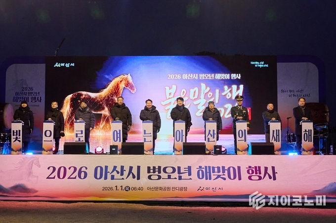 지이코노미 정길종 기자 |아산시는 1월 1일 오전 아산문화공원 잔디광장에서 ‘2026 병오년(丙午年) 해맞이 행사’를 열고 시민들과 함께 새해 첫 아침을 맞이했다.