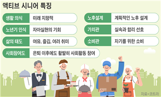 액티브 시니어(Active Senior) 1980년대 미국 심리학자 버니스 뉴가튼은 ‘50~75세로 경력과 경제력 및 왕성한 소비력을 갖춘 세대’를 액티브 시니어(Active Senior), 신중년이라 정의하였다. 수동적 노인 개념을 벗어난 어제의 노인이 아니라 젊고 활동적인 오늘의 노인이라고 범주화하였다. 우리나라에서도 액티브 시니어가 올해부터 본격적으로 은퇴 생활에 접어들게 된다. 대체로 1964~74년생으로 분류할 수 있는 이들을 ‘2차 베이비 붐 세대’라고 부르기도 하는데, 1955~63년생인 ‘1차 베이비 붐 세대’와 비교하면 고도성장기에 성장한 덕에 고학력과 노후 준비가 잘된 이들의 비중이 높다. 온-오프라인 소비시장의 큰손으로 현재 골프의 대중화에 가장 앞장서고 있으며 가장 많은 골프마니아들이 대부분이다 ‘액티브 시니어’로 쓰면서 이들을 ‘액시세대’로 줄여서 부르고 있다. |
