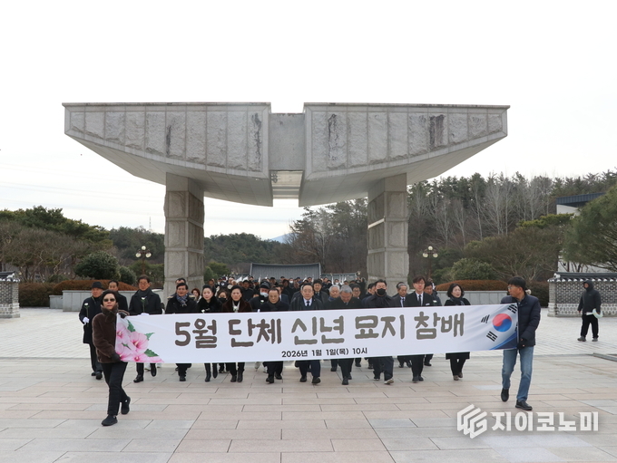 지이코노미 한정완 기자 | 5·18 민주화운동 4단체가 2026년 병오년 새해 첫날 국립5·18민주묘지를 찾아 신년 참배를 진행하고, 오월 영령들 앞에서 한 해의 공동 실천 과제를 엄숙히 다짐했다.