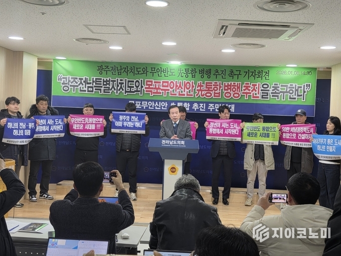목포무안신안 선통합추진 주민연대는 8일 전남도의회에서 기자회견을 열고, 광역단위 행정통합 논의가 본격화된 지금이 기초자치단체 통합을 함께 논의할 적기라고 강조했다. 광주·전남 행정통합이 정치권과 행정부 차원에서 속도를 내는 상황에서, 생활권과 직결된 기초단위 통합 논의가 뒤로 밀릴 수 있다는 우려도 함께 제기했다.