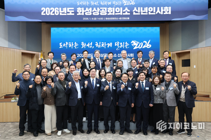 지이코노미 최영규 기자 | 화성상공회의소가 지난 9일 화성상공회의소 컨벤션홀에서 ‘2026년 신년인사회’를 열고 관내 기업인을 격려했다.