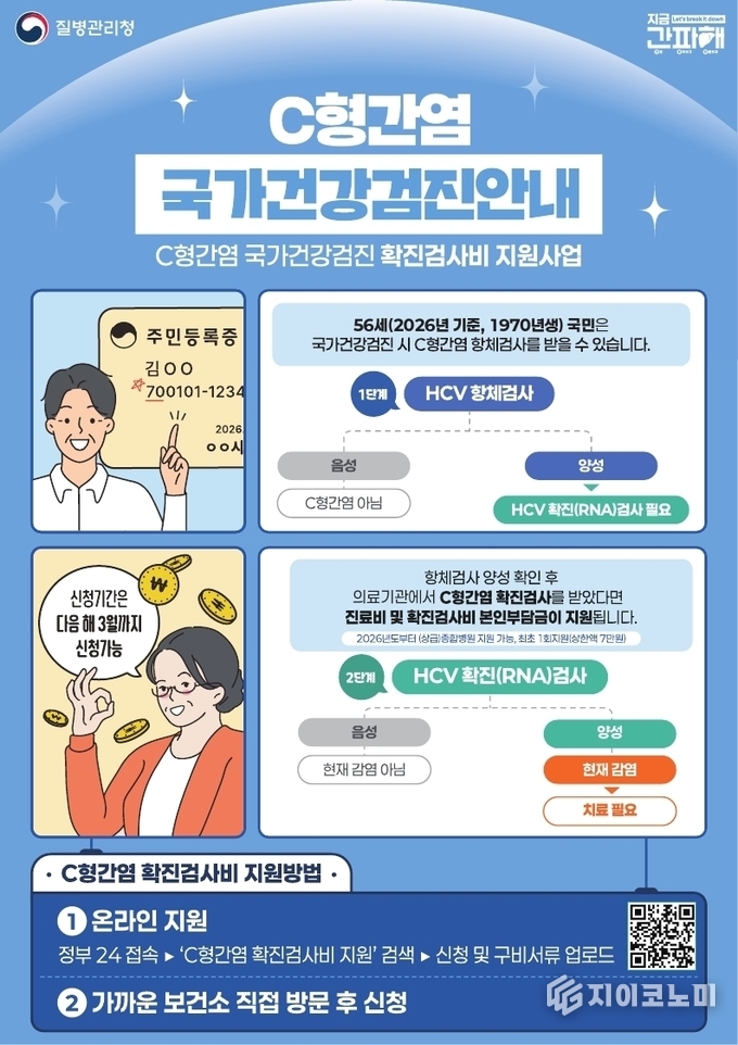 국가건강검진(1차 검사)에서 C형간염 양성 반응이 나올 경우, 실제로 바이러스가 있는지 확인하기 위해 확진 검사(RNA 검사)를 반드시 받아야 한다. 기존에는 동네 의원급에서 검사한 경우만 비용이 지원됐으나, 올해부터는 대학병원이나 종합병원 등 대형 의료기관을 이용해도 지원금을 받을 수 있게 됐다.