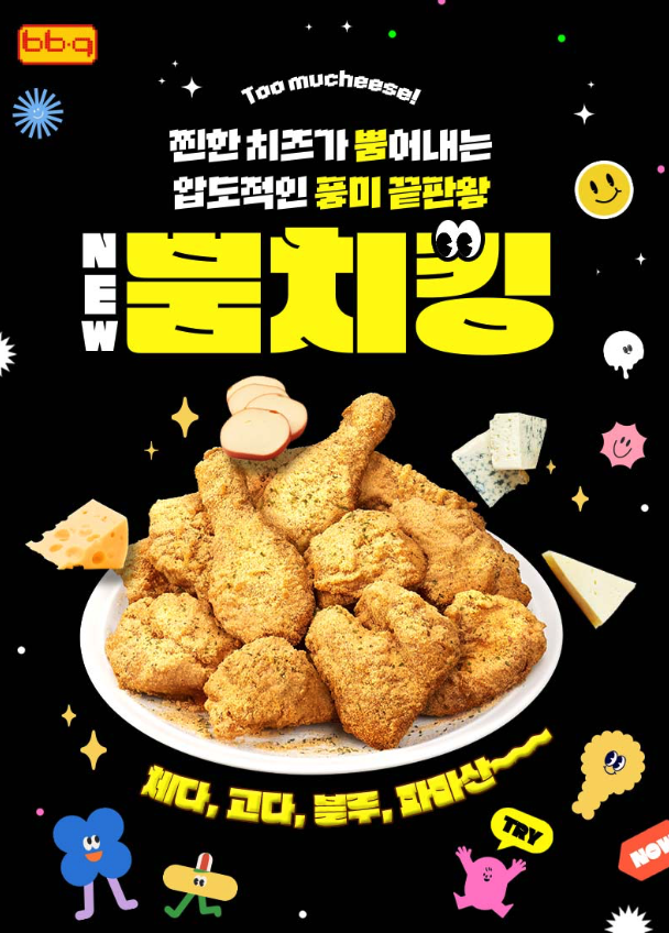 ‘뿜치킹’은 약 1년에 걸친 연구개발 끝에 완성된 메뉴로, 업계 최초로 고다·체다·블루·파마산 등 네 가지 치즈를 조합한 시즈닝을 적용한 것이 특징이다. 여기에 요거트와 유크림 분말을 더해 깊고 부드러운 풍미를 구현했으며 BBQ 치킨 특유의 바삭한 식감 위에 진한 치즈의 고소함과 은은한 단맛이 어우러져 남녀노소 부담 없이 즐길 수 있도록 설계됐다.