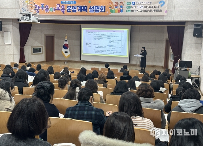 지이코노미 한정완 기자 | 광주광역시교육청(교육감 이정선)은 22일 광주시교육청교육연수원 중강당에서 관내 공·사립유치원 교원 및 교육전문직원 등 300여 명을 대상으로 ‘2026학년도 광주유아교육 운영계획 설명회’를 개최했다.