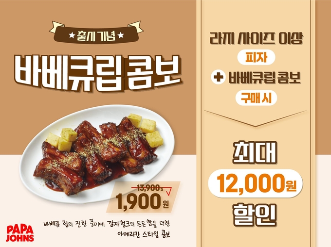 피자와 함께 즐길 수 있는 다양한 메뉴를 선보이며 선택의 폭을 넓혀온 파파존스는 신메뉴 ‘바베큐립 콤보’ 출시를 통해 색다른 조합을 제안하며 또 한번 차별화된 경험을 선사하겠다는 계획이다.