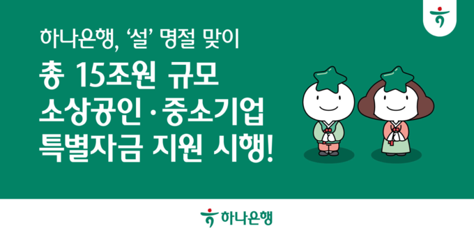 하나은행 관계자는 “설 명절을 맞이하여, 자금이 꼭 필요한 소상공인․중소기업들에게 조금이나마 도움이 되길 기대한다”며 ”가족과 함께 따뜻하고 풍성한 명절 보내시길 바란다“고 말했다.