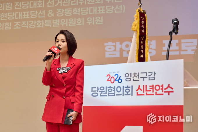 지이코노미 최영규 기자 | 국민의힘 서울 양천구갑 당원협의회(당협위원장 함인경)는 29일 오후 2시, 양천구 해누리타운 해누리홀에서 ‘2026 당원 신년연수’를 개최하고 당원 결속과 6·3 지방선거 승리 의지를 다졌다.