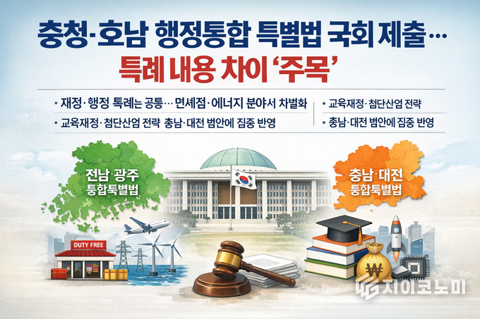 지이코노미 정길종 기자 |수도권 일극 체제를 완화하고 지방 소멸에 대응하기 위한 충청권과 호남권의 행정통합 논의가 본격화된 가운데, 국회에 제출된 양 지역 통합 특별법안의 세부 내용 차이가 주목받고 있다.