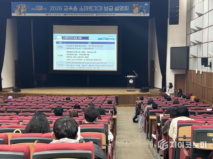 시교육청은 사업의 원활한 추진을 위해 지난 24일 광주AI교육원 전산센터 대강당에서 중·특수학교 업무 담당자 120여 명을 대상으로 스마트기기 보급 설명회를 열고, 배포 방안과 관리시스템, 유해정보 필터링 시스템 등을 안내했다.