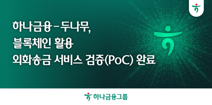 이번 기술검증(PoC)은 지난해 12월 하나금융그룹과 두나무가 ‘블록체인 기술 기반 글로벌 금융서비스 공동 개발을 위한 업무협약’을 체결하고, 외국환 업무를 포함한 전통적인 금융 서비스에 블록체인 기술을 적용하기 위한 지속적 협력의 첫 번째 결실이다.