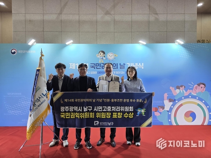 지이코노미 한정완 기자 | 광주광역시 남구 시민고충처리위원회가 제14회 국민 권익의 날을 맞아 국민권익위원회가 주관한 옴부즈만 부문 단체 분야 공적 평가에서 우수단체로 선정돼 국민권익위원장 표창을 받았다고 4일 밝혔다.