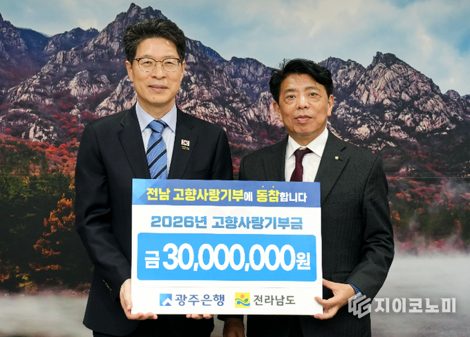 지이코노미 김정훈 기자 | 광주은행이 전라남도에 고향사랑기부금 3000만 원을 전달하며 지역 상생 행보를 이어갔다.