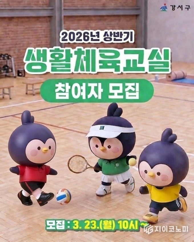 지이코노미 최영규 기자 | 서울 강서구(구청장 진교훈)는 구민의 건강한 일상을 지원하기 위해 오는 3월 23일(월)부터 3월 27일(금)까지 2026년 상반기 생활체육교실 참가자를 모집한다고 밝혔다.