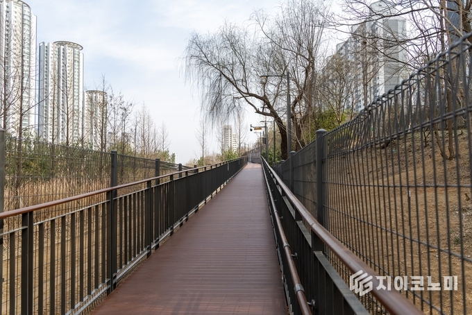 지이코노미 최영규 기자 | 마포구(구청장 박강수)는 성산동 일대 주민의 의견을 반영해 우리가족의 숲(중동 18, 구(舊) 성산자동차학원 부지) 내 단절된 공간을 활용한 무장애 산책로를 새롭게 조성했다.