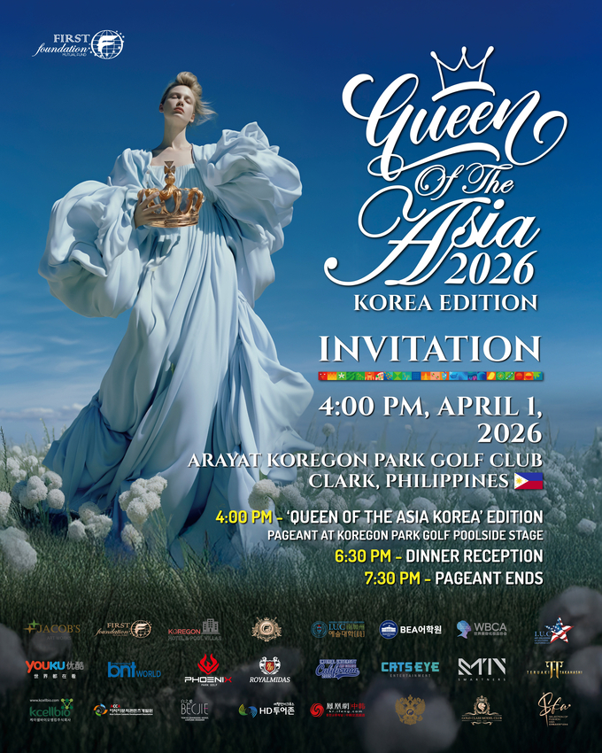 같은 날 열리는 ‘2026 QUEEN OF THE ASIA’는 아시아 미시즈 대회 가운데 최고 권위를 지닌 행사로 꼽힌다. 이번 본선에는 아시아 40개국에서 예선을 거쳐 선발된 15명의 참가자가 진출해 지성과 미를 겸비한 아시아 여성의 대표 자리를 놓고 경쟁을 펼친다.