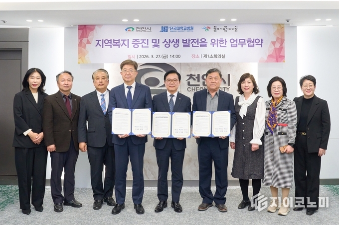 천안시는 27일 시청 제1소회의실에서 단국대학교병원, 천안시행복키움지원단장 협의회와 지역복지 증진 및 상생 발전을 위한 업무협약을 체결했다고 밝혔다.