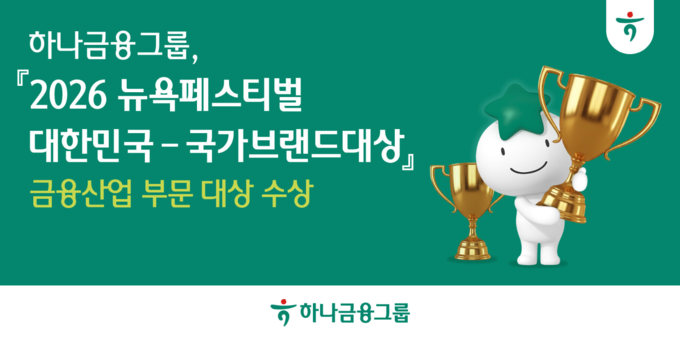 지이코노미 양하영 기자 | 하나금융그룹(회장 함영주)은 ‘2026 뉴욕페스티벌 대한민국 국가브랜드 대상(NYF K-NBA)’에서 「금융산업 부문 대상」을 수상했다고 밝혔다. 또한, 하나금융그룹의 관계사인 하나은행도 은행 부문 국가브랜드경쟁력지수(NCI) 1위에 선정되며, 그룹과 은행이 나란히 최고 수준의 브랜드 경쟁력을 인정받는 ‘더블 크라운’을 달성했다.