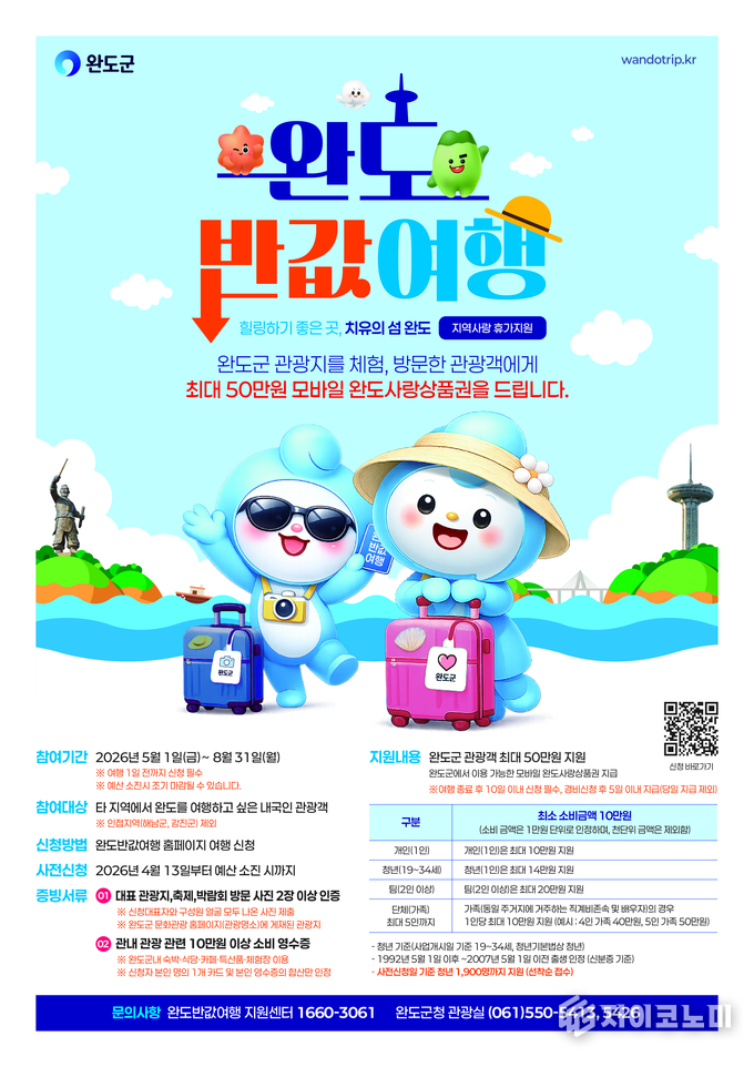 완도군은 이번 사업이 관광객 유입과 지역 상권 소비를 동시에 끌어올리는 계기가 될 것으로 보고 있다. 다만 예산 소진 시 조기 마감될 수 있어 사전 신청이 관건이 될 전망이다.