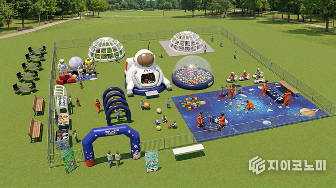 이번 야외 키즈카페는 단순한 놀이공간을 넘어 체험 중심의 ‘테마형 놀이공간’으로 꾸며진다. 테마는 ▲뚝딱뚝딱 건축가 ▲와글와글 동물농장 ▲산불을 조심해 ▲신병교육대 ▲신비한 우주 등 5가지다. 각 공간에서는 역할놀이와 신체활동, 미션수행이 결합된 프로그램을 통해 아이들이 건축가, 소방관, 우주비행사 등 다양한 직업과 역할을 체험할 수 있도록 했다.