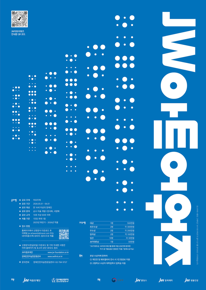 올해는 공모전에 처음 도전하는 신진 작가들을 독려하기 위해 ‘JW기대주상’을 신설했다. 작품성을 인정받은 생애 첫 공모전 참가자에게 수여되는 이 상은 장애 예술계의 새로운 원석을 발굴하는 데 기여할 것으로 보인다.
