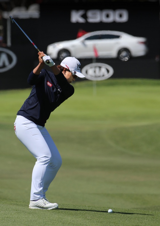 허미정이 4번 홀에서 세컨샷을 하고 있다
