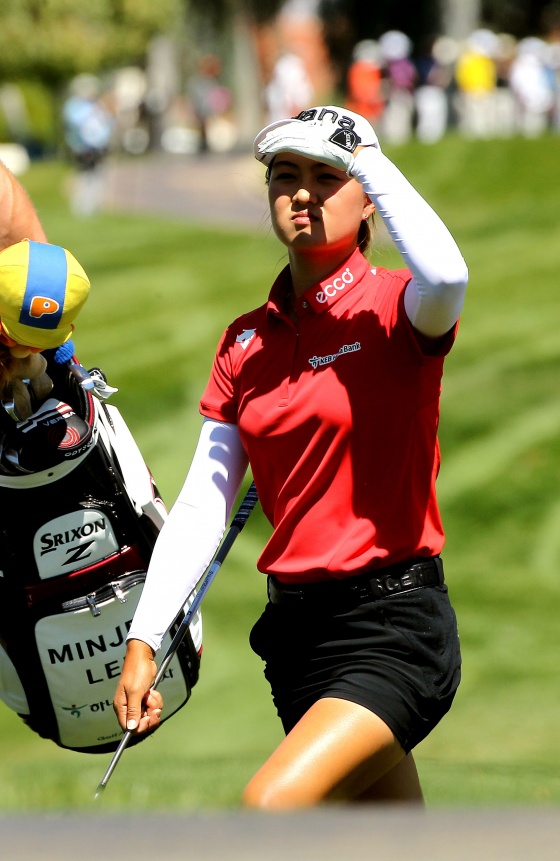 이민지가 3번 홀 세컨샷을 하고서 타구방향을 살피며 걸어가고 있다