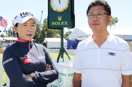 ANA대회장을 찿아 한국선수들의 경기를 관람하는 강형모대한골프협회 부회장과 박세리프로