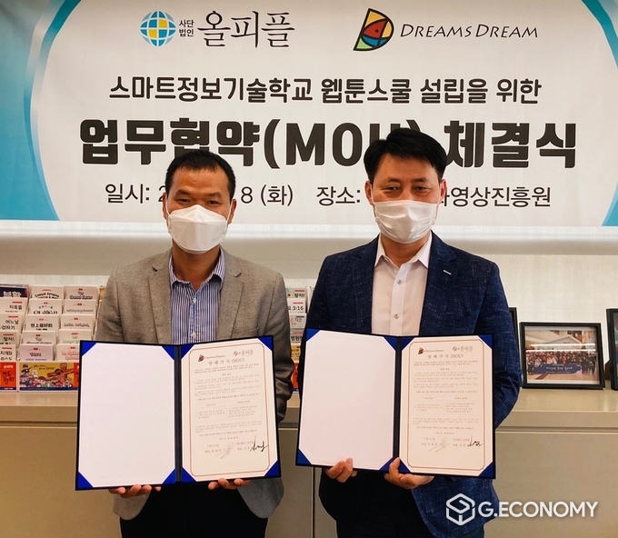 이번 업무 협약은 사단법인 올피플에서 저개발국가에 짓고 있는 드림스드림 스마트정보기술학교 내에 웹툰 스쿨을 설립하여 저개발국가 아이들과 청년들을 웹툰 전문가로 양성하는 것이 주요 골자이다.