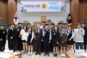 지이코노미 정길종 기자 |충남도의회(의장 홍성현)는 29일 당진 송악고등학교 학생 17명과 지도교사 2명이 참여한 가운데 ‘청소년 의회교실’을 개최했다. 이날 송악고 학생들은 의장 선거에 출마한 후보들의 정견 발표를 청취한 후 직접 투표로 의장을 선출하고, 도의원 역할을 체험하며 주민대표로서의 책임과 의사결정 과정을 경험했다. 학생들은 이어 ‘입시 중심 교육의 한계와 진로 다양성 보장’이라는 주제로 2분 발언을 진행하고, ‘충청남도형 학생 멘탈케어데이 운영 조례안’을 심의·의결하는 등 실제 회의 절차를 그대로 재현했다. 도의회 관계자는 “청소년 의회교실은 의장선거, 발언, 조례안 처리 등 민주적인 회의 진행 과정을 몸소 배우는 뜻깊은 시간”이라며 “청소년들이 풀뿌리 민주주의와 지방의회의 기능을 이해할 수 있도록 체험학습을 지속 확대하겠다”고 말했다.