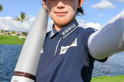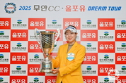 최정원이 우승 트로피를 들고 포즈를 취했다. 이하 사진: KLPGA 제공 지이코노미 김대진 기자 | 최정원(20,NH투자증권)이 한국여자프로골프(KLPGA) 2부 투어인 드림투어에서 첫 우승을 달성했다. 최정원은 14일 전남 무안 컨트리클럽(파72·6,420야드)에서 열린 KLPGA 2025 무안CC·올포유 드림투어 18차전(총상금 7,000만 원) 최종 2라운드에서 보기 없이 버디 8개로 8언더파 64타를 쳤다. 최정원의 아이언샷 최종 합계 14언더파 130타를 기록한 최정원은 2위 박예지(11언더파 133타)를 3타 차로 제치고 우승을 차지했다. 우승 상금은 1,050만 원이다. 이번 대회 우승으로 시즌 상금 1,361만3,500원을 기록한 최정원은 드림투어 상금순위를 34위까지 끌어올렸다. 7월 KLPGA 투어 준회원으로 입회한 최정원은 1주일 만에 솔라고 점프투어(3부) 9차전에서 우승했고, 8월 정회원으로 승격하며 드림투어로 옮긴 뒤 여섯 번째인 이번 대회에서 트로피를 들어 올렸다. 최정원은 "올 시즌 남은 왕중왕전에서도 좋은 성적을 내 정규투어 시드를 꼭 확보하고 싶다. 내년 정규투어에 데뷔해 신인상에 도전하고 싶다"고 말했다. 최정원이 동료 선수