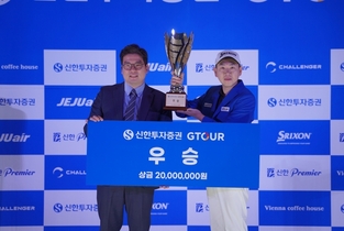 조하리가 우승 트로피를 들고 포즈를 취했다. 사진: KLPGA 제공 지이코노미 김대진 기자 | 전남 강진군에 위치한 다산베아채 골프앤리조트(파72/6,245야드)의 베아채(OUT), 장보고(IN) 코스에서 열린 ‘KLPGA 2025 다산베아채 골프앤리조트 점프투어 with SBS골프 7차전(총상금 3,000만 원, 우승상금 450만 원)’에서 조하리(20)가 생애 첫 점프투어 우승을 차지했다. 조하리는 1라운드에서 보기 없이 버디만 무려 9개를 잡는 환상적인 퍼포먼스를 보이며 중간합계 9언더파 63타로 일찌감치 4타차 선두에 자리했다. 이후 최종라운드에서 조하리는 1개의 보기와 3개의 버디를 묶어 최종합계 11언더파 133타(63-70)의 성적으로 2위와의 타수차를 8타까지 벌리며 생애 첫 우승 트로피를 들어 올림과 동시에 점프투어 역사상 최다 타수차 우승이라는 진기록까지 만들어냈다. 조하리는 “프로 데뷔 후 첫 우승과 함께 최다 타수차 우승이라는 기록까지 세우게 되어 더욱 뜻 깊고 의미 있는 우승이라 생각한다.”면서 “좋아하는 코스에서 열려 우승할 수 있겠다는 자신감을 가지고 임했는데 우승하게 돼서 정말 기쁘고, 어떤 상황에서도 자신 있게, 절대 포기하지